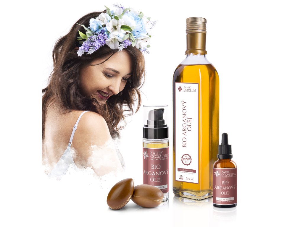 Olej pocházející z rostliny argánie trnité rostoucí pouze v jihozápadním Maroku a je vhodný pro péči o pokožku obličeje i celého těla a vlasovým zábalům. Tradiční kosmetika Marockých žen