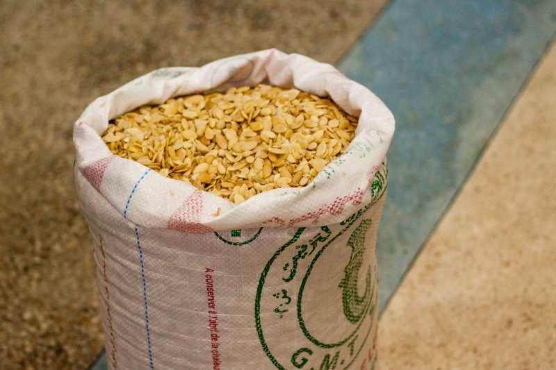 Příběh našeho oleje začíná u stromů argánií v Maroku. Zde jsou dodavateli sbírány a loupány plody a následně zbavovány své tvrdé vnější části. V případě, že má být výsledným produktem olej na vaření, semena se ještě jemně opraží - získají tak nádhernou vůni. Pokud je cílem olej kosmetický, zůstavají syrová. Všechno je přivezeno v pytlích do lisovny v Agadiru.