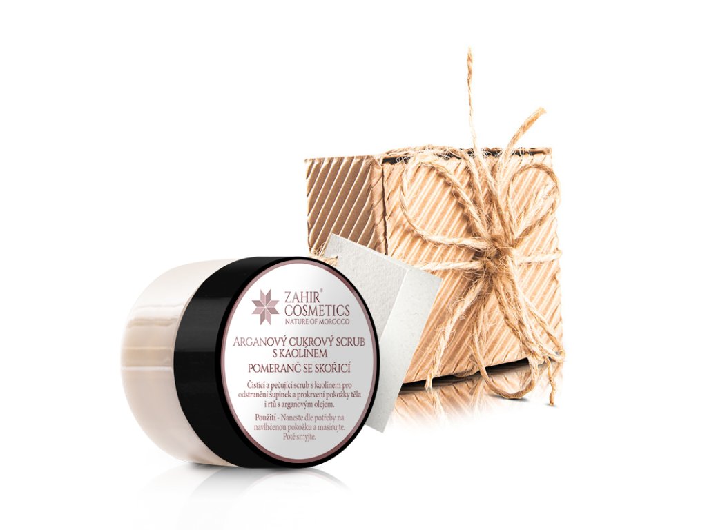 ARGANOVÝ CUKROVÝ SCRUB S KAOLÍNEM - POMERANČ SE SKOŘICÍ 25 mlArganový cukrový scrub s kaolínem pečuje o pokožku celého těla, ale můžete ho používat podle potřeby jen lokálně, třeba na ruce a krk. Přípravek zbaví kůži šupinek, nečistot a suchých míst a pokožka získá viditelnou hebkost. Cukrové krystalky odstraní starou kůži, o výživu se postarají arganový olej, bambucké máslo i chmelový výtažek, který má uklidňující a omlazující účinky.