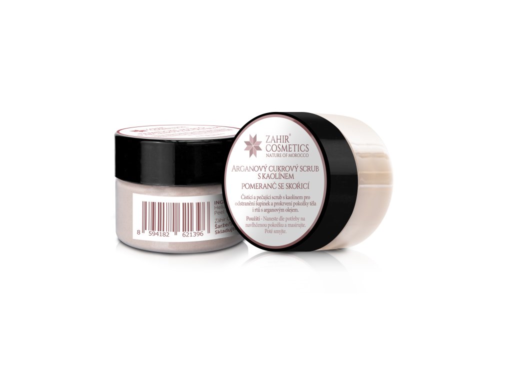 Tělový arganový cukrový scrub s kaolínem) jemně odstraňuje šupinky z povrchu pokožky, vyhlazuje ji a prokrvuje.