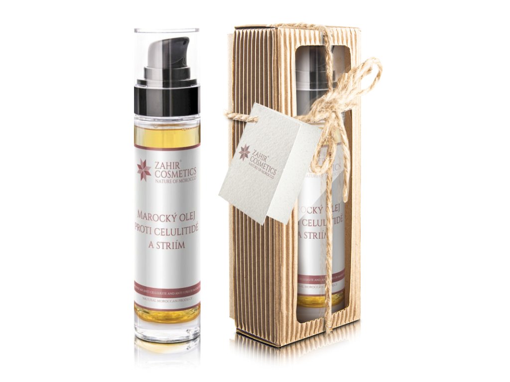 MAROCKÝ OLEJ PROTI CELULITIDĚ A STRIÍMPromyšlený koktejl marockých, za studena lisovaných olejů, pomáhá likvidovat nevzhledné hrbolky na kůži i viditelné strie a předchází jejich dalšímu tvoření.