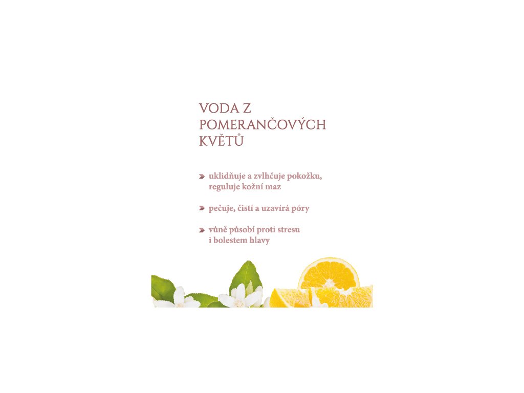VODA Z POMERANČOVÝCK KVĚTŮVoda z pomerančových květů (jinak např. také “neroli voda“) vzniká při destilací kvítků pomerančovníku hořkého.